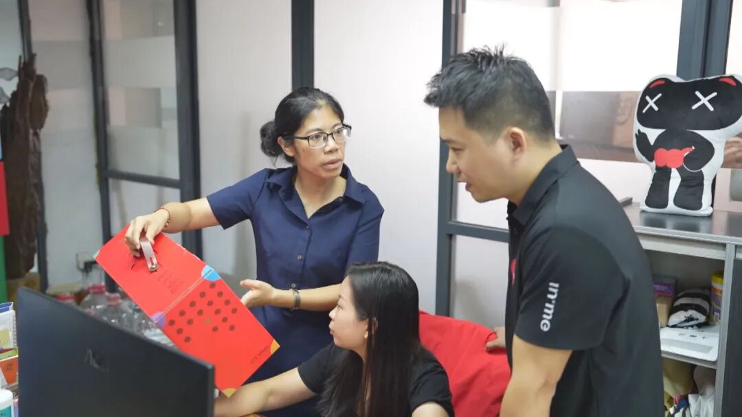 此前,在街道的引導(dǎo)幫助下,該公司借鑒國潮設(shè)計理念,推出了帶有云洞巖、龍文塔等本土元素的“龍文甄選”禮盒,并于中秋節(jié)前上市銷售。為進一步跟蹤該禮盒產(chǎn)品的市場反饋情況,近日,一忙完手頭的急活,黃小芬便來到企業(yè),與負(fù)責(zé)人面對面交流,摸清近期企業(yè)實際需求,為其旺季生產(chǎn)保駕護航。
